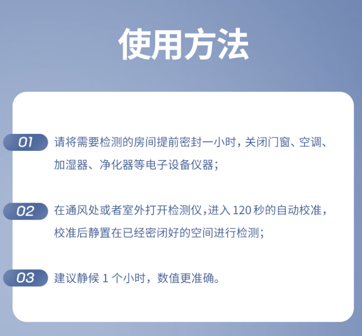 记者在A先生所购买的同款家用甲醛仪的详情中看到,使用前需要对检测空间提前密封1小时,关闭门窗、空调、加湿器、净化器等电子设备仪器,并且对测试仪进行校准。此外,为获得准确数值,建议静候1小时。对于使用甲醛测试仪的过程,A先生未回应记者相关提问。