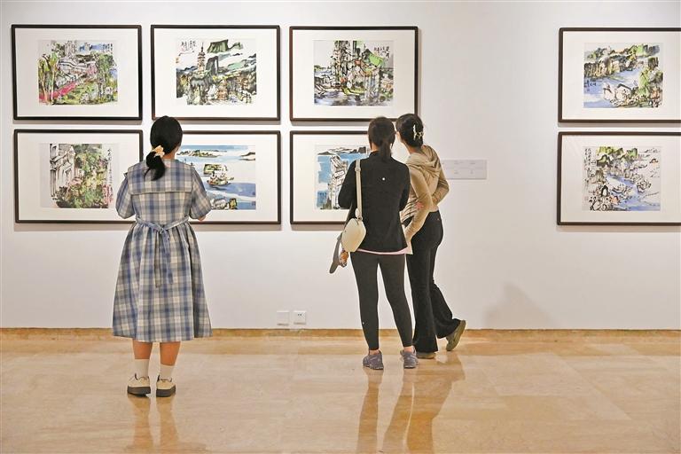 观众观赏何香凝美术馆“墨语山花·当代中国画邀请展”。 深圳特区报记者 胡蕾 摄