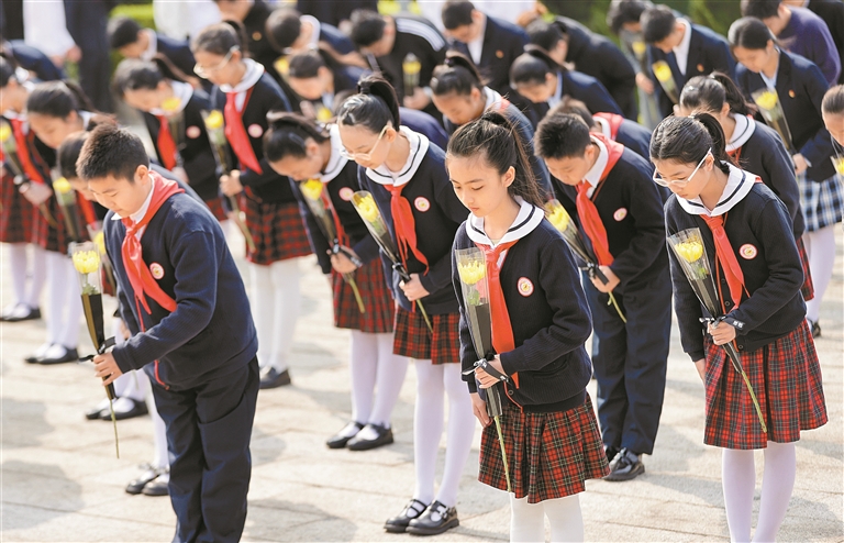 市青少年清明祭英烈主题党日团日队日活动举行。深圳特区报记者 杨浩翰 摄