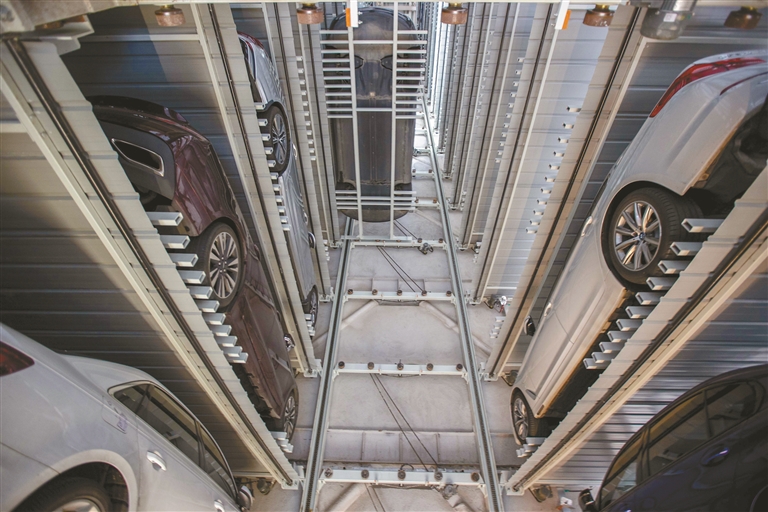 昨日,记者走进这座车库,零距离感受其满满科技感。占地仅178平方米的车库内部,3个21层高的独立停车区,给人强烈的视觉张力。车库可提供智能车位120个。