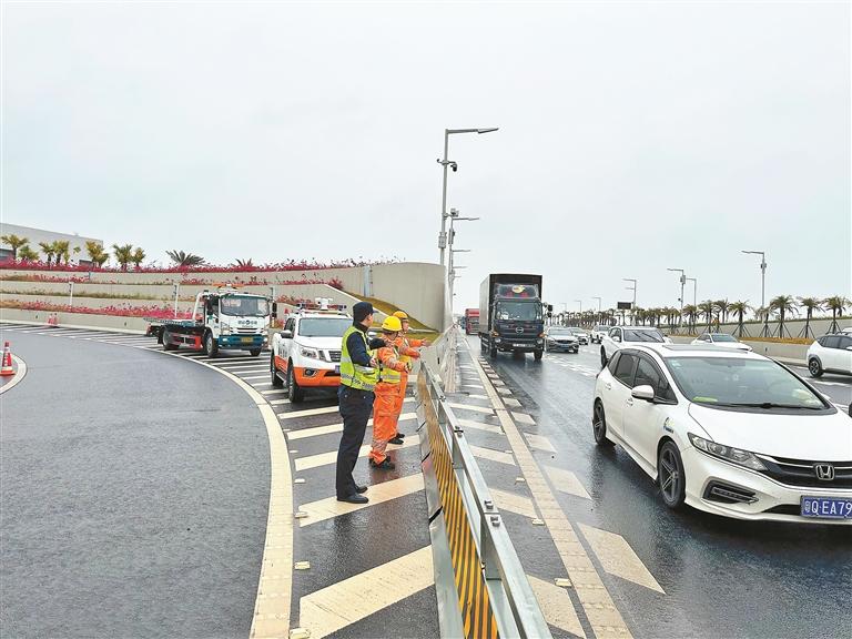 相关部门在深中通道投入300余人维持秩序,保障畅通。(受访单位供图)