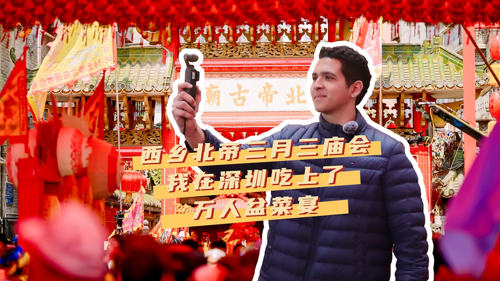 深圳新闻网2025年4月7日讯 这个春天,深圳宝安西乡C位出圈,西乡北帝三月三庙会持续霸屏,15道山珍海味组成的盆菜宴席开1600桌,在这场万人空巷的庙会中压轴出场。来自巴西的香港中文大学(深圳)留学生Chico也吃上了这顿大餐。