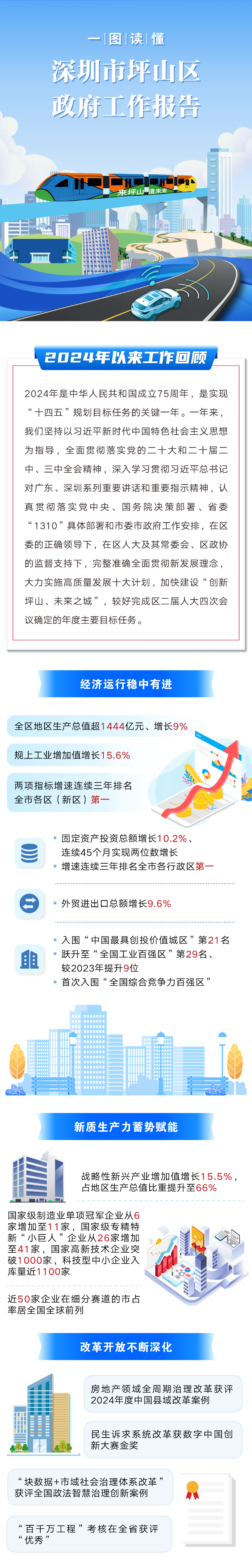 根据会议议程,区长赵嘉代表坪山区人民政府向大会作政府工作报告。报告总结2024年以来工作,谋划部署2025年工作。