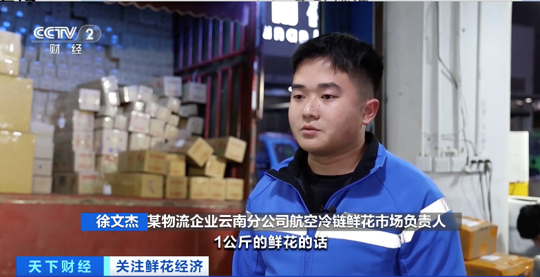 某物流企业云南分公司航空冷链鲜花市场负责人 徐文杰:比如三年前我发一个件到北京,1公斤的鲜花,之前可能要花10多元,比如14元或者15元,现在我们发一个件到北京,可能会花五六元甚至更低。