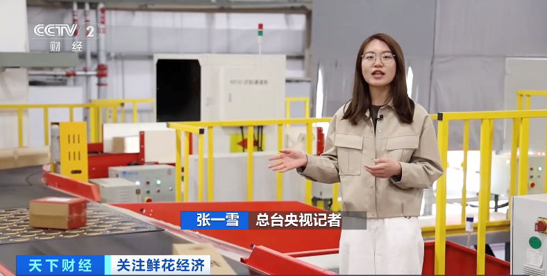 总台央视记者 张一雪:在昆明呈贡区的一家鲜花冷链集散中心,从斗南花市发过来的鲜花包裹会在这里进行发货前最后的分拣。这里有一个全自动化的智能分拣设备,它可以识别每个包裹上面的代码,根据代码上的目的地,再将这些包裹自动分流。这样一台设备,一个小时可以识别5000多件包裹。