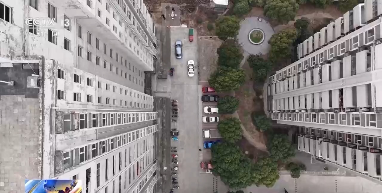 这是事发小区的航拍画面,李先生就居住在左边这栋楼。事发前一天晚上,因为小区车位都已经停满了,李先生就把车停在了两栋楼之间、警车停放的这个位置。因为停放的位置距离另一栋楼比较远,警方分析,高空抛物可能是李先生所在楼栋的住户所为。