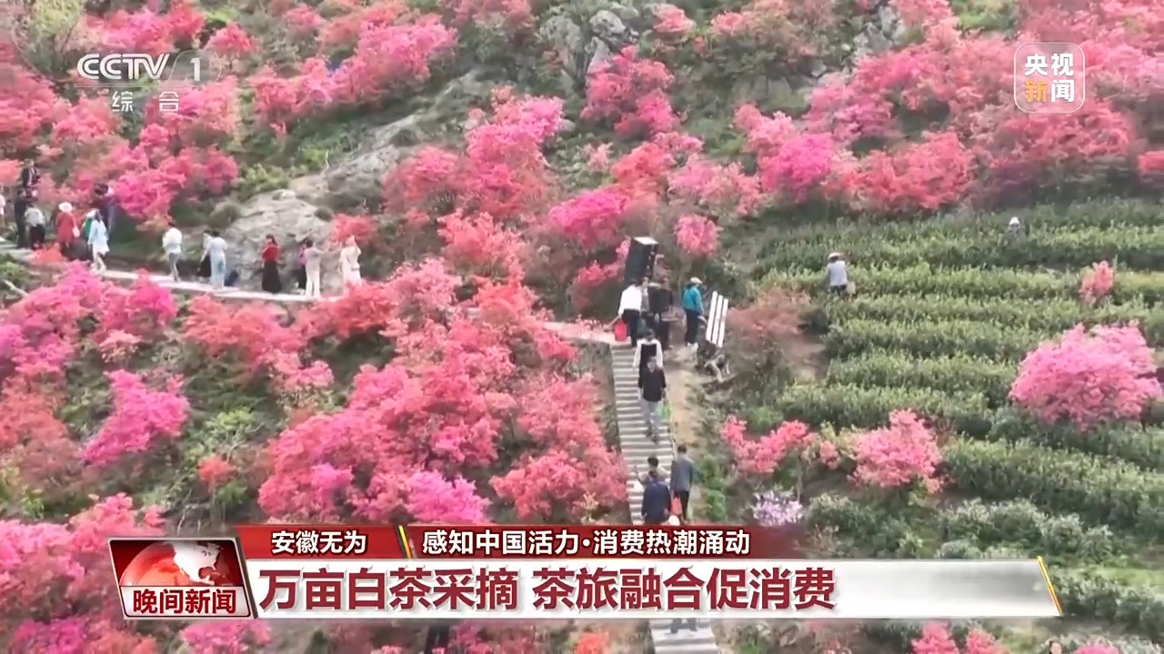 “茶叶搭台,经济唱戏”。眼下,安徽无为一万五千多亩白茶进入采摘期,当地依托独特地理优势,把茶区变成景区,推动茶旅融合,吸引众多游客前来体验赏花品茶的乐趣。其中,昆山镇的三公山白茶园通过实景沉浸式表演秀和体验采茶,让游客身临其境,拥抱春色,赏茶山花海之美。