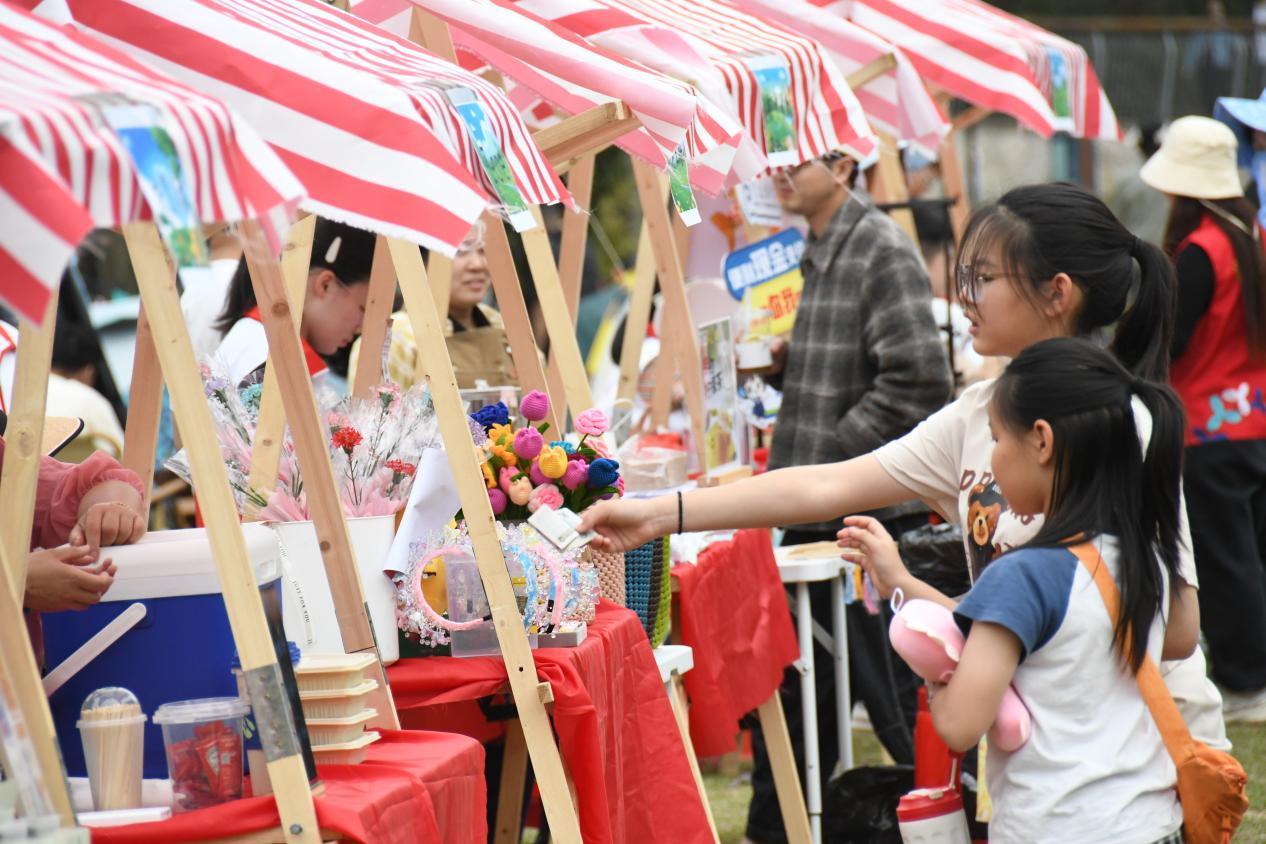此外,文化体验区中,居民们纷纷试穿客家服饰、手绘非遗漆扇,尽情感受传统文化的独特魅力;露营区开展的“户外小课堂”普及露营知识与环保理念,使亲子家庭在实践中强化了生态意识;表演区变身“开放式剧场”,居民积极自发献唱,一幅邻里和谐共融的美好画卷徐徐展开;“志愿1小时”服务区作为“红色驿站”,吸引了众多居民与游客参与文明引导、商户协助等轻量级志愿活动,有效促进了社区治理的参与度。