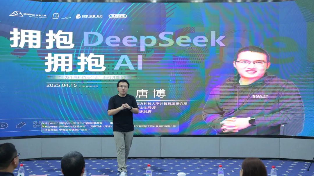 4月15日,作为坪山区2025年世界读书日系列活动重头戏的“十万个高科技为什么”系列讲座,在深城投&中城生命科学园精彩开讲,南方科技大学唐博教授带来《拥抱DeepSeek,拥抱AI》的前沿分享,吸引近百名科研人员、企业职工及市民读者参与,掀起一场科普与阅读交融的热潮。