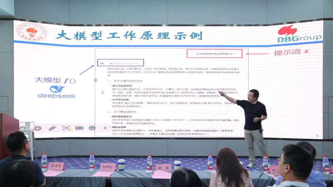 讲座现场,唐博教授围绕 DeepSeek这一热门话题,详细解读什么是DeepSeek,剖析其技术内核、研发背景以及独特优势,帮助听众理解这一创新型科技公司及其研发的人工智能大模型产品的本质。随后运用生动的案例演示DeepSeek在不同行业的应用方式场景,让大家对这项技术有了更加直观和深入的理解。最后展望DeepSeek之后人工智能的发展方向,探讨未来技术突破的可能路径以及对社会各方面的潜在影响。