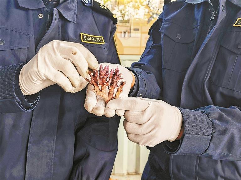 皇岗海关关员在皇岗口岸客运进境车道查获濒危珊瑚17.5千克。