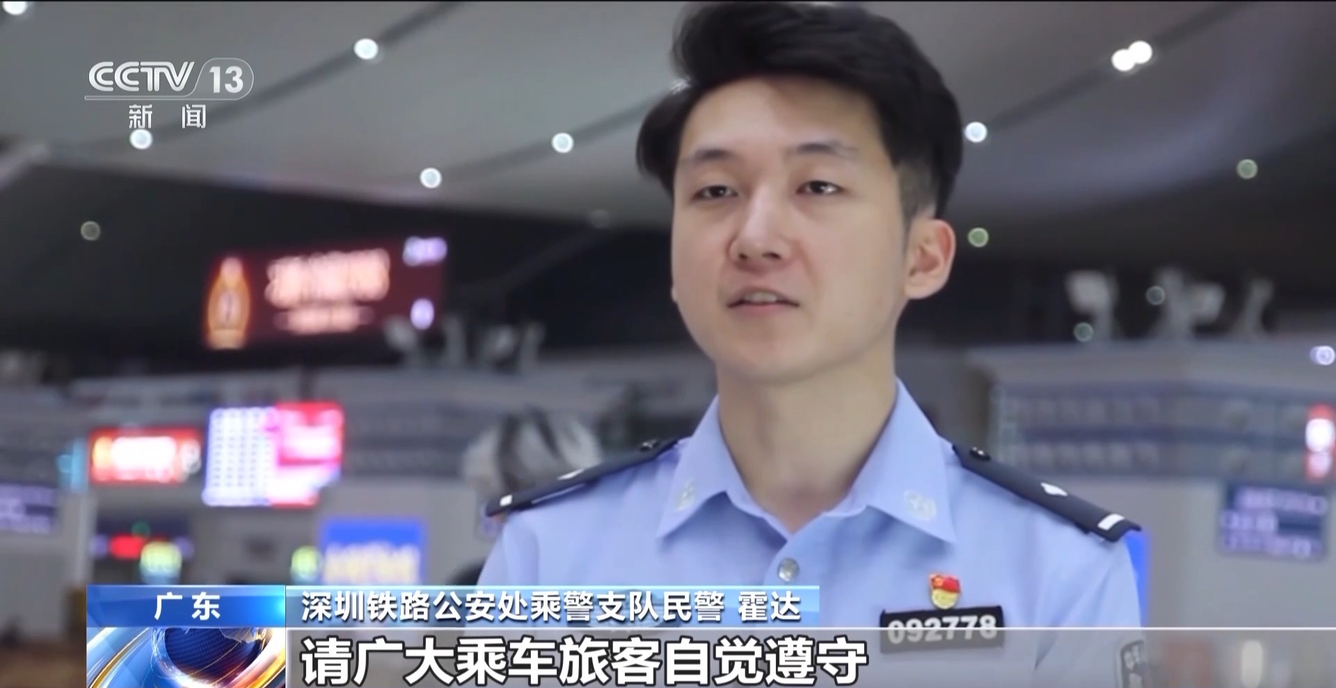 深圳铁路公安处乘警支队民警 霍达:阻挡列车车门关闭构成了妨碍交通工具正常行驶的违法行为。请广大乘车旅客自觉遵守良好的公共交通秩序,外出时预留充足的乘车时间,文明出行。