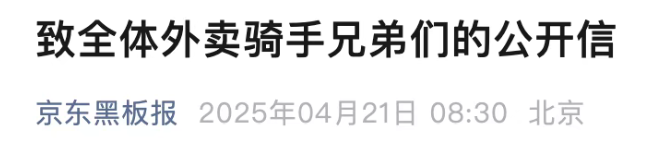 4月21日,京东发布《致全体外卖骑手兄弟们的公开信》。