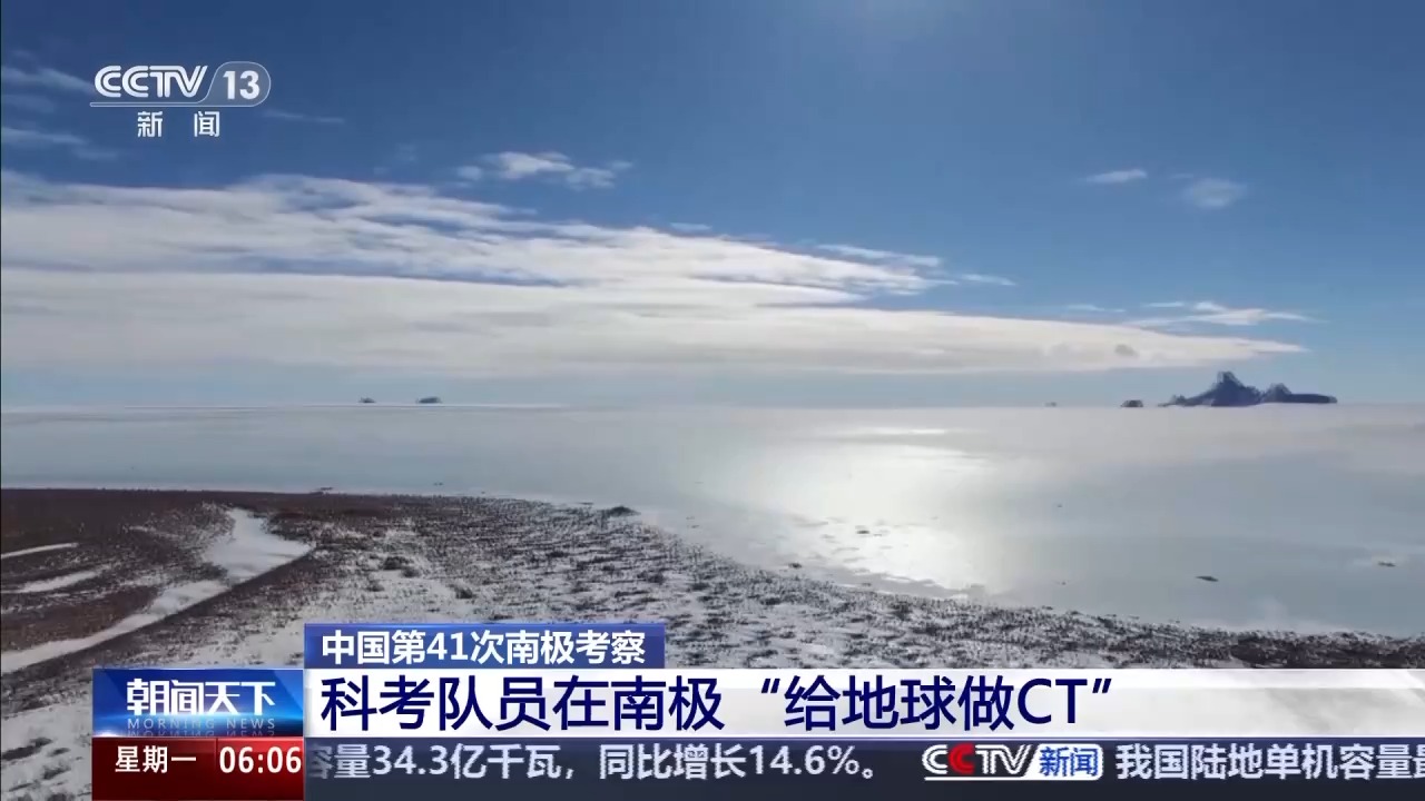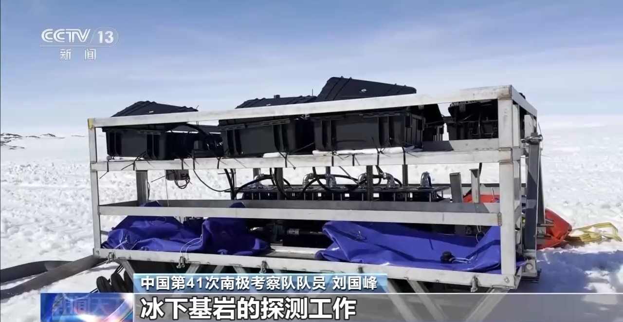中国第41次南极考察队队员 刘国峰:在基岩出露区和海陆交汇处,我们主要采用了无人机搭载的航空伽马能谱仪和地表的磁力梯度仪开展探测工作。在冰盖上,我们主要采用了电磁和地震探测的方法,其中主要是地震探测的方法。说到地震探测,它是需要一个震源激发地震波,地震波在冰盖和冰下基岩内传播,遇到界面以后它会反射回地表,我们在地表布设了检波器来接收这些反射回地表的地震波,以实现对冰盖和冰下基岩的探测工作。