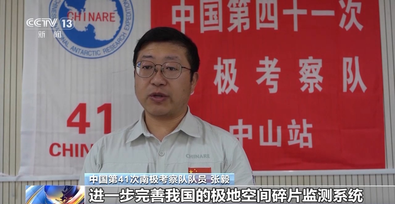 中国第41次南极考察队队员 张毅:我们本次南极科考的主要任务是部署一台大口径、可无人值守的自动跟踪光学望远镜,对空间碎片目标进行长时间监测,进一步完善我国的极地空间碎片监测系统。