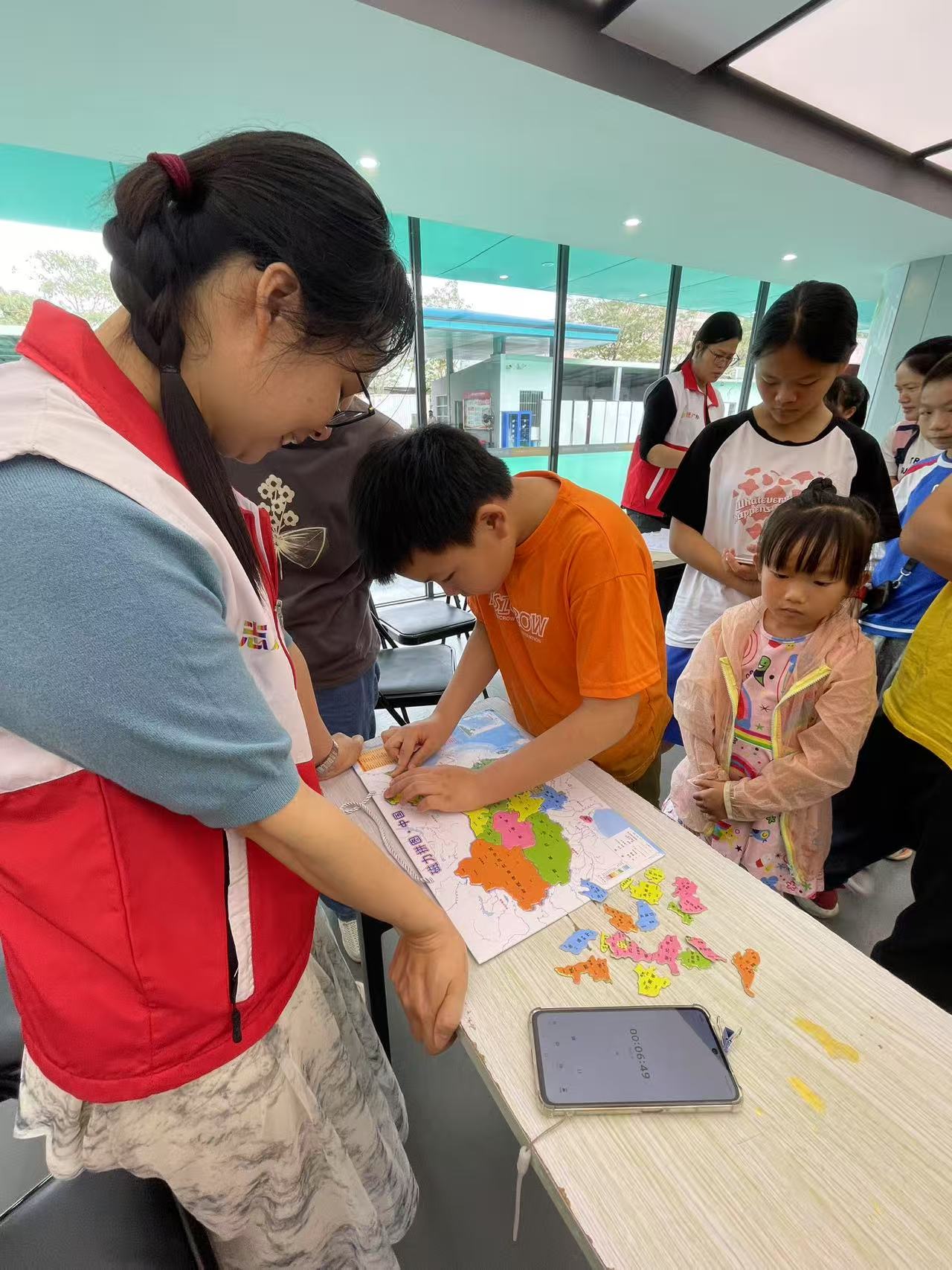将活动氛围推向高潮的,当属“保密智趣大作战”环节。这里趣味问答活动精彩纷呈,令人应接不暇。在“限时国家拼图挑战”区域,计时器发出的滴答声,仿佛紧张赛事的鼓点。30块色彩绚丽的拼图碎片散落在桌上,宛如等待归位的“国土密码”。居民们全神贯注,根据拼图边缘弧度,飞速填充拼图内容,每当有人成功完成挑战,周围都会响起欢呼声。“保密盲盒探秘”“网络陷阱找茬”“趣味套圈答题”等区域同样创意十足。志愿者化身“最强考官”,通过各种有趣的形式,检验居民的保密知识储备,引导大家学会识别生活中潜在的失窃密风险。