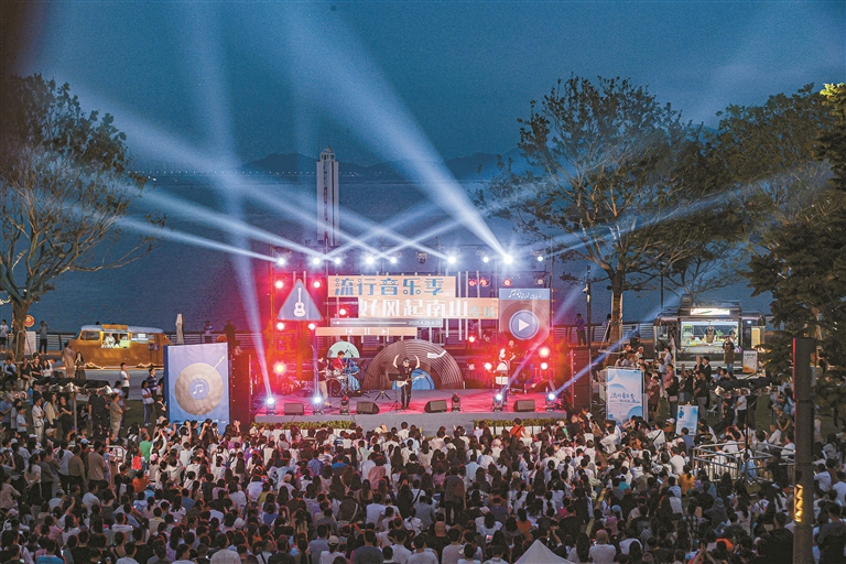 深圳新闻网2025年4月28日讯(深圳特区报记者 何龙 摄)4月26日至28日,“流行音乐季·好风起南山”露天音乐会在深圳K11 Ecoast海滨文化艺术区海边剧场上演。三天连轴专场各具特色:民谣专场以温情旋律勾画城市记忆,经典回溯专场重现华语乐坛黄金岁月,青春时尚专场则用多元曲风点燃年轻活力。