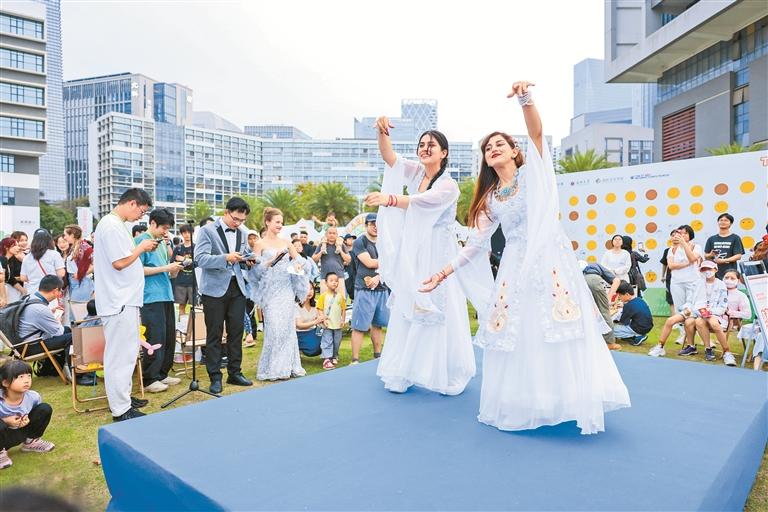 深圳新闻网2025年4月28日讯(深圳特区报记者 刘羽洁 通讯员 韩晓飞 摄)作为改革开放的窗口,深圳以海纳百川的胸怀,促进文明交流互鉴。图为深圳大学第八届国际文化节,中外学生化身“文化使者”,联袂奉献一场多元文化盛宴。