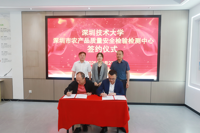 深圳新闻网2025年4月28日讯(记者 张金)4 月 27 日,深圳技术大学与深圳市农产品质量安全检验检测中心在坪山区龙田基地举行战略合作框架协议暨校外实习基地合作协议签约仪式,这标志着双方在深化产教融合、推动产学研用一体化方面迈出了实质性步伐。深圳技术大学药学院院长贺震旦、党总支书记李旭,市农检中心主任陈子晟和龙田街道办事处主任杨洲杰等出席活动。