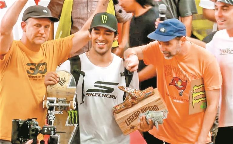啊果与滑板赛事合作设计奖杯。受访者供图