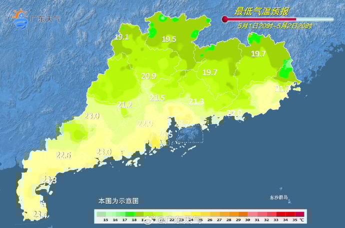 预计,5月1日白天,粤西市县和珠三角南部阴天有小到中雨,韶关、清远阴天转多云,其余市县阵雨转多云;5月2日,粤西和珠江三角洲南部市县有分散(雷)阵雨,其余市县多云;5月3日,全省大部多云间阴天,有分散(雷)阵雨。未来三天,广东省大部市县早晚有(轻)雾。雨雾时能见度低,注意交通安全;注意防范局地的强降水和强对流天气带来的安全风险。