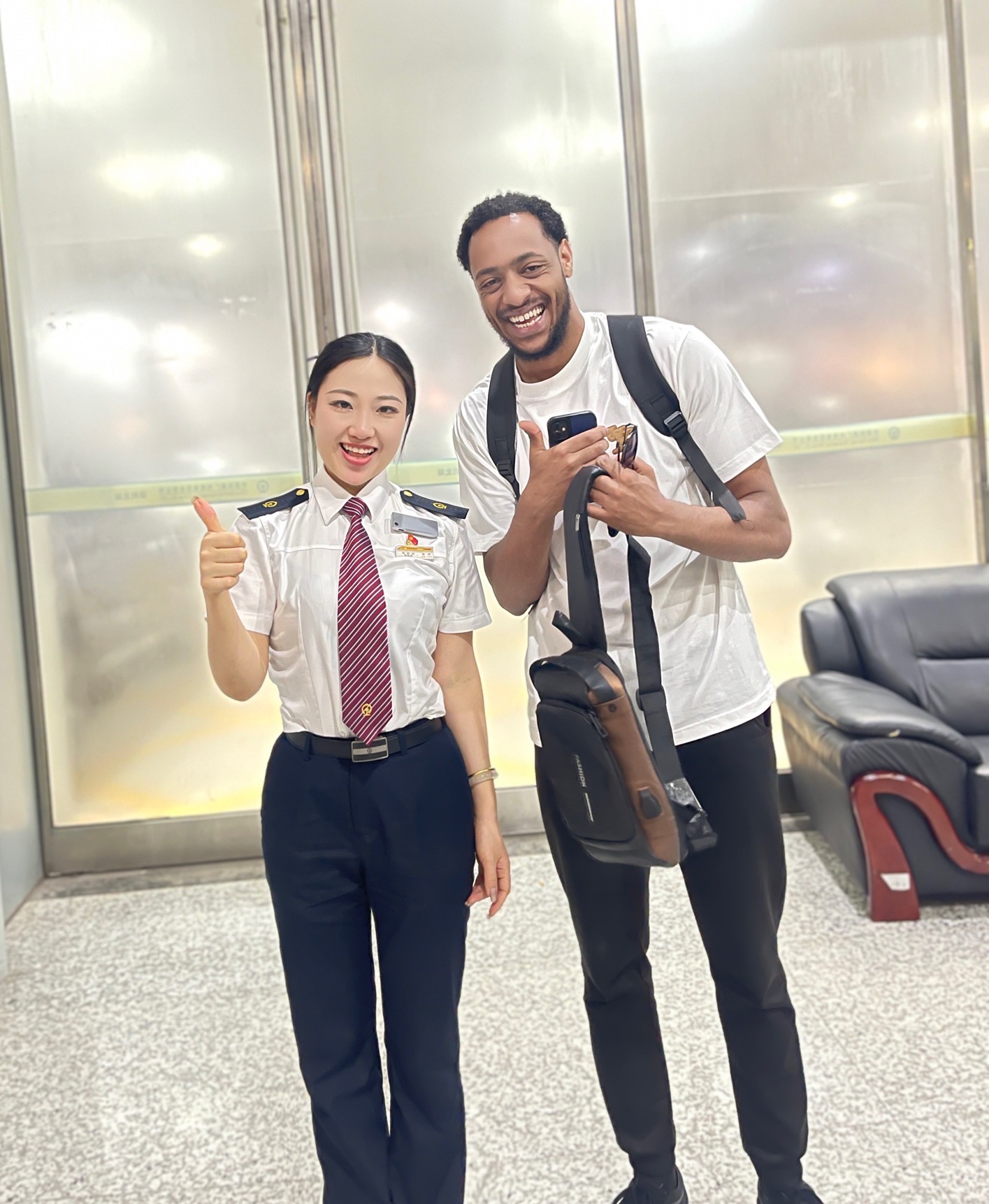 4月28日8时许,两名非洲旅客手持用外语标注的接站信息,在深圳北站出站通廊中徘徊不前,脸上写满了迷茫与困惑。“迎春花”服务队员赵贝主动上前询问,却发现他们完全不懂英语,手中的接站信息也是她从未接触过的新语言。一时间,沟通陷入僵局,但赵贝没有气馁,她仔细观察信息,幸运地看到了“A2”的字样。她果断带领两位旅客前往A2出站口,一路上不断用手势和表情安抚旅客。最终,顺利帮助他们找到了前来接站的家属。三人重逢时,他们激动地比着手势,脸上洋溢着喜悦的笑容,执意要与赵贝合影留念。