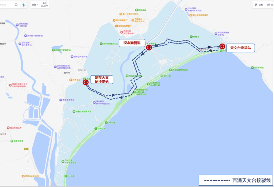 西涌沙滩穿梭线和天文台接驳线作为东部公交精心打造的西涌景区文旅线路,解决了深圳天文台无公交覆盖的痛点,实现了对西涌景区六大核心景点的无缝衔接。