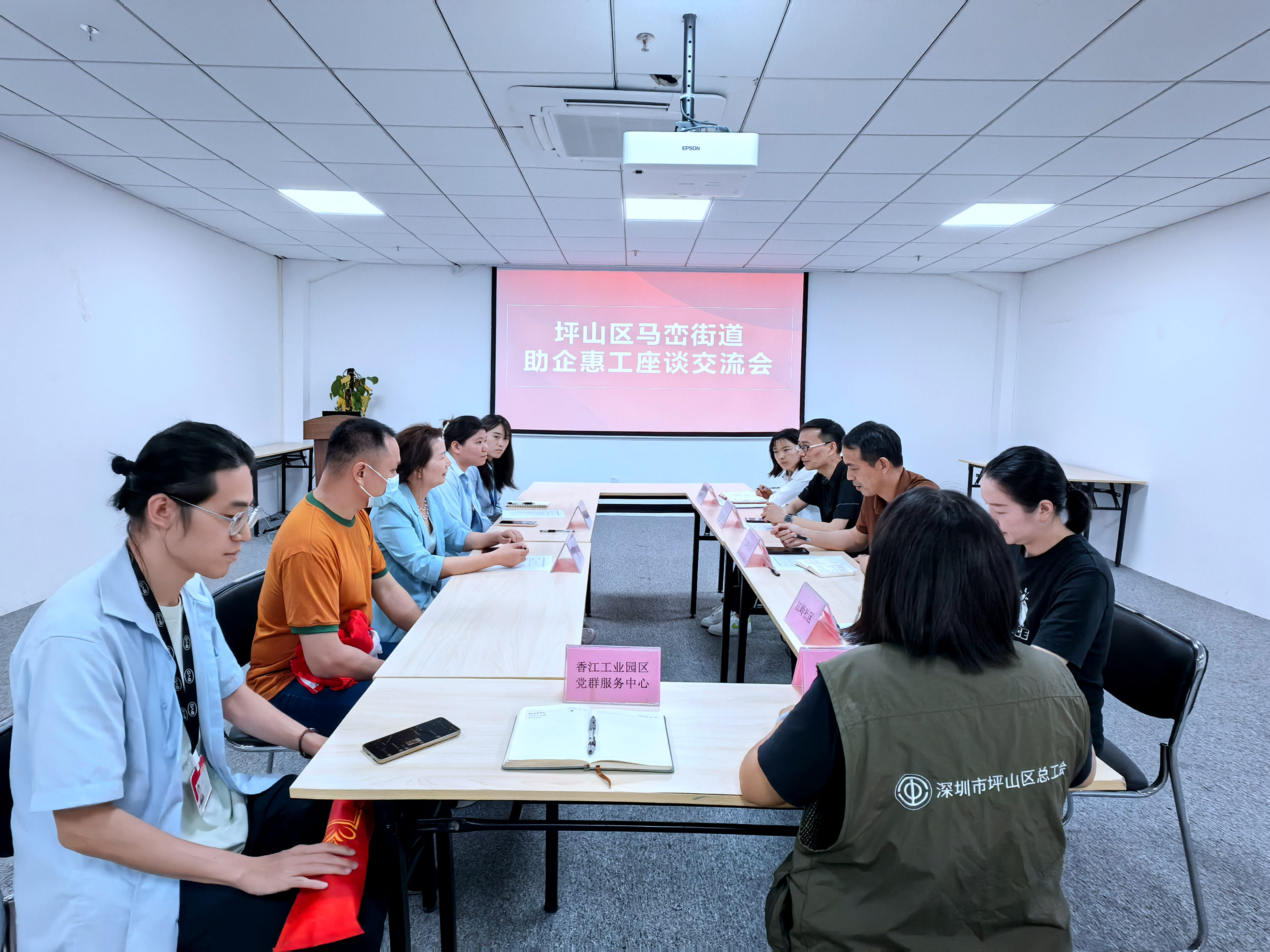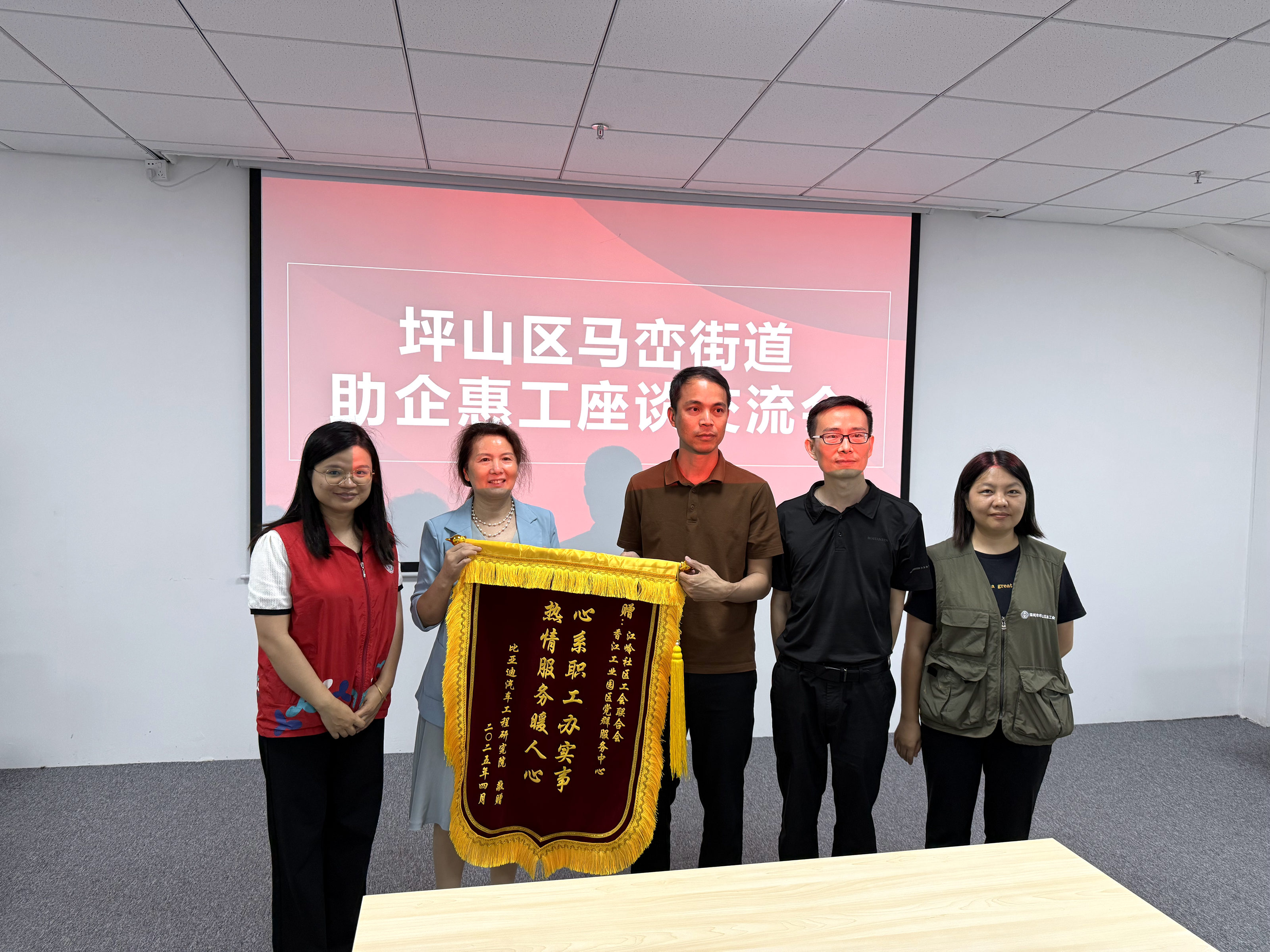 在同步开展的马峦街道助企惠工座谈交流会上,马峦街道党群服务部、江岭社区、比亚迪汽车工程研究院相关负责人及职工代表齐聚一堂,围绕服务企业与职工的各方面工作展开深入交流。各方就职工关心的问题和企业发展的最新需求等进行了充分沟通,为后续更好地开展服务工作奠定坚实基础。比亚迪汽车工程研究院还向江岭社区工会联合会和香江工业园区党群服务中心赠送了锦旗,表达对社区长期以来关心企业发展、关爱职工健康的诚挚谢意。