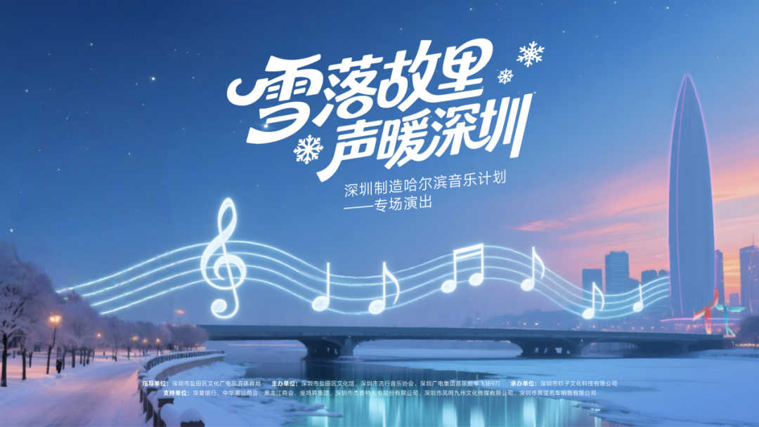2025年5月24日19:30,“雪落故里,声暖深圳——深圳制造·哈尔滨音乐计划”专场演唱会将登陆盐田区山海音乐空间(盐田区文化馆),以音乐为媒,以雪城为韵,邀您见证深哈文化交融的璀璨瞬间。