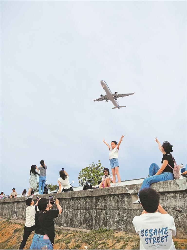 近日,深圳市宝安区福永河畔因独特的“低空观机”体验走红网络。沿河绿道上,每隔数分钟便有飞机以不足百米的超低空姿态掠过,轰鸣声与河面波光交织,吸引众多市民驻足拍摄。据悉,该区域正处深圳宝安国际机场航道下方,起降航班在此进入最终进近阶段。游客举起手机与银翼同框的画面,成为社交媒体热门素材。市民王女士感叹:“仿佛触手可及的钢铁雄鹰与生态河道同框,是深圳空港新城最震撼的城市名片!”深圳特区报记者 刘钢 通讯员 向江平 摄