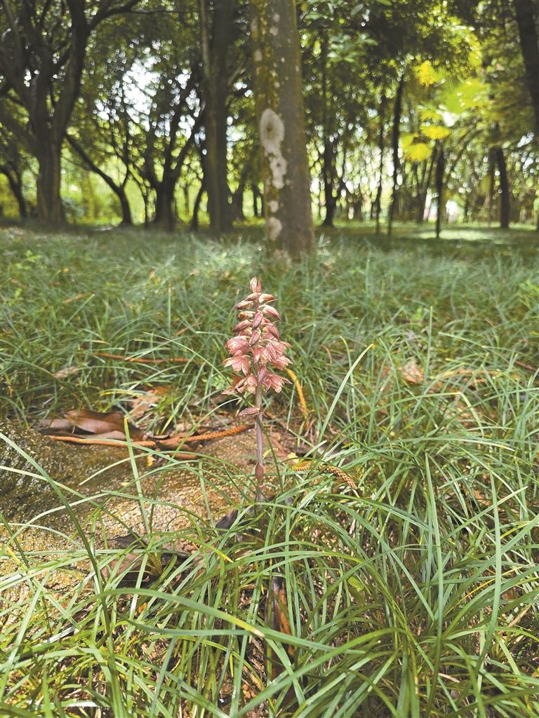 近日,市民在荔香公园再次发现了珍稀野生植物无叶美冠兰。 林京宇 摄