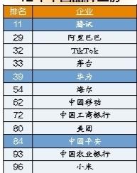 从榜单整体来看,苹果、谷歌、微软分列前三名。除腾讯、华为和中国平安之外,今年入围“最具价值全球品牌价值百强”榜单的中国品牌还有阿里巴巴(29)、TikTok(32)、茅台(33)、海尔(54)、中国移动(62)、中国工商银行(72)、美团(80)、中国农业银行(93)和小米(96)。