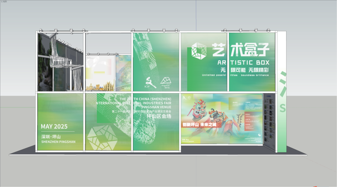 戏剧元素是坪山展区不可或缺的要素,“艺术盒子”外形设计“特自然、特包容、特柔和”,将戏剧概念融入坪山的自然特征,用朦胧融合的绿意表达“坪山戏剧健康生长”,侧面鳃状的图形点缀“会呼吸的戏剧空间”。