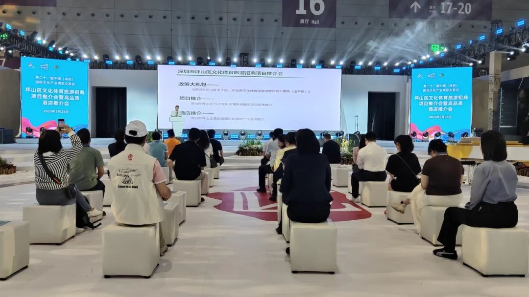 深圳新闻网2025年5月25日讯(记者 王奕婷)5月23日,坪山区文化体育旅游招商推介会暨高品质酒店推介会在深圳国际会展中心16号馆芬奇文化展厅召开。会议依托坪山的区位优势、营商环境、特色项目等资源条件,介绍了坪山区文体旅促消费政策、15项文体旅招商项目以及坪山区高品质酒店清单等,现场向投资人发出“坪山邀请”,欢迎来坪山投资兴业,发展壮大文体旅产业,共同建设这座“未来之城”。