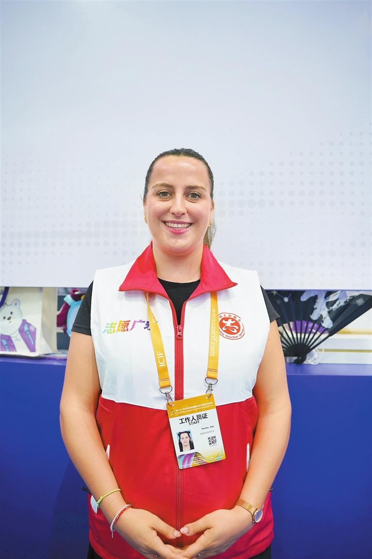 在人来人往的展会通道里,记者见到一位外籍志愿者正在用流利的中文与观众进行沟通。这位志愿者的中文名字是“婷娜”,来自意大利。婷娜是深圳职业技术大学的学生,会讲六国语言,包括中文、意大利语、西班牙语、英语、法语、德语,来中国学习中文已有一年多时间。