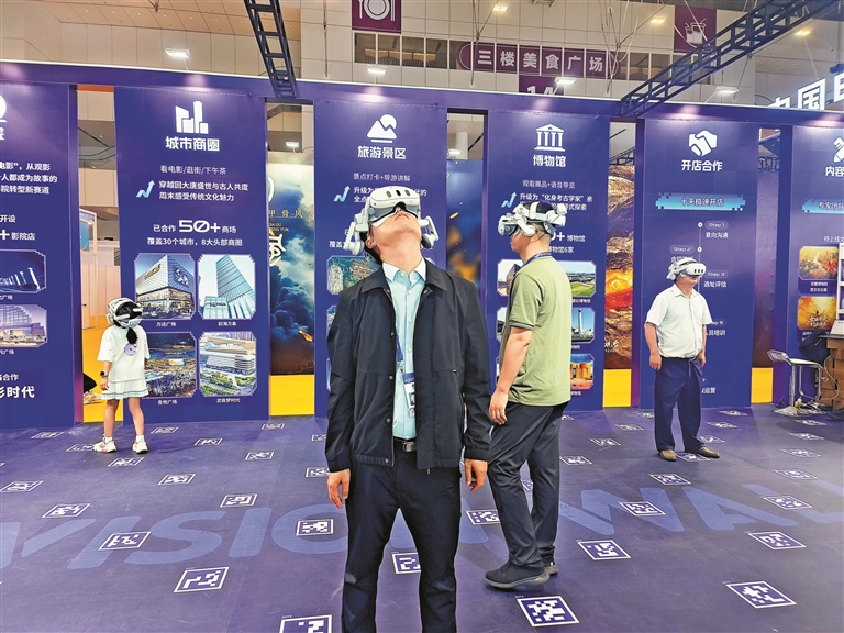 深圳新闻网2025年5月26日讯(深圳商报记者 刘娥 张妍 赵鸿飞 文/图)你想穿越盛唐感受长安繁华,或是化身赛车手体验一把“速度与激情”?在第二十一届文博会14号馆影视版权游戏电竞展,戴上VR眼镜即可解锁“时空穿越”新姿势。5月24日,记者探馆发现,元象科技、华强方特、星际空间、深广电、河南广播电视台等带来的VR大空间项目人气爆棚,市民排长龙体验“文化+科技”的奇妙感受。