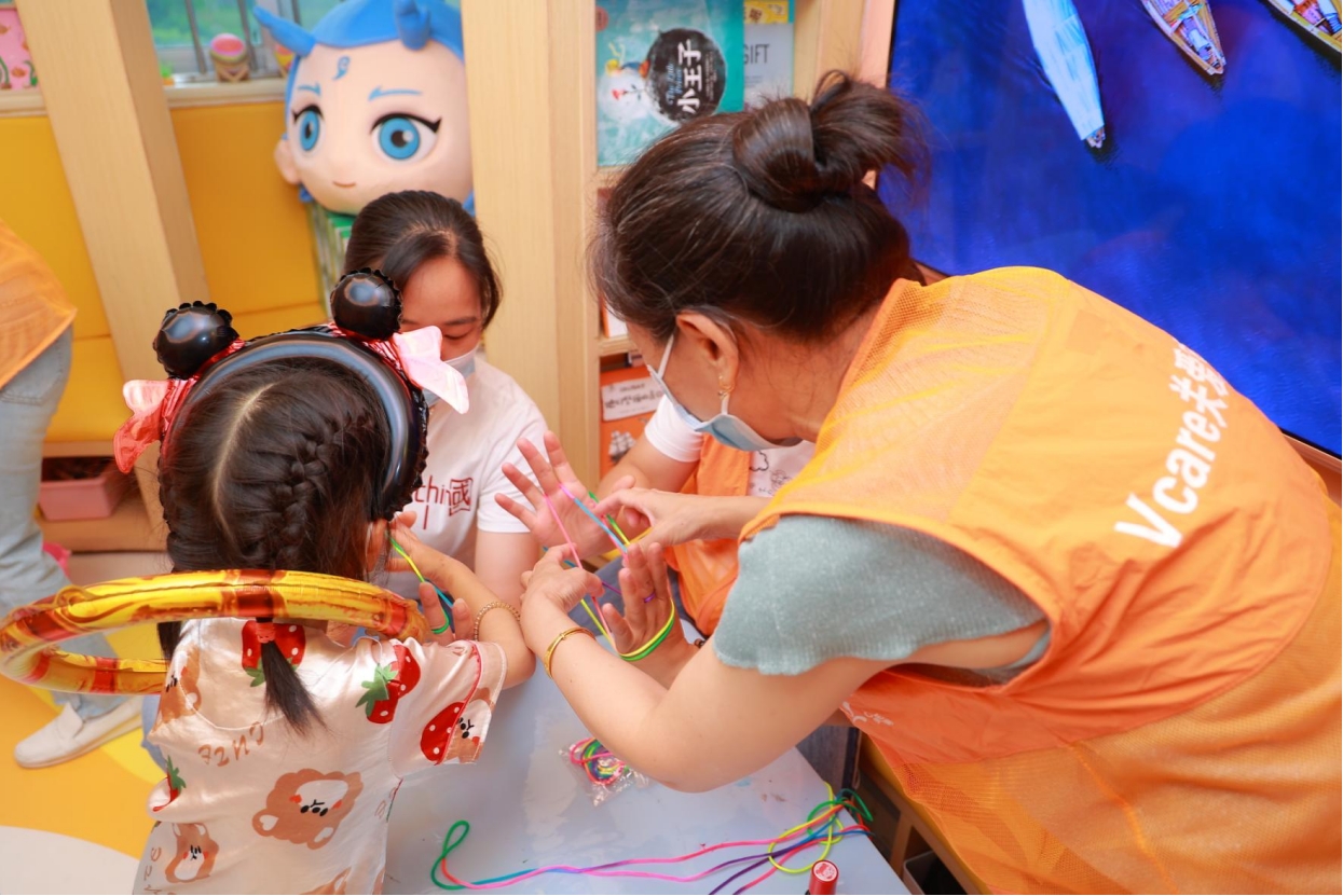 记者从活动现场获悉,Vcare关爱空间联动腾讯志愿者协会财经分会、中兴通讯公益基金会、香港城市大学(EMBA校友会)、库莱特爱心协会发起六一儿童节圆梦小心愿活动,为血液肿瘤科、风湿免疫科、消化内科、神经内科、神经外科、重症医学科、非常学堂特殊儿童等近200名儿童实现小愿望,从“实验室积木玩具”到“益智玩具”,从“睡衣”到运动鞋······志愿者化身“心愿守护者”逐一核对并实现患儿小心愿并手写祝福卡。一位申请串珠玩具的先天性心脏病女孩在愿望卡上写道:“想用串珠给妈妈编手链,谢谢她带我去很远的地方治病。”稚嫩的字迹背后是孩子对母亲无私付出的感恩,串出家庭的辛勤付出。