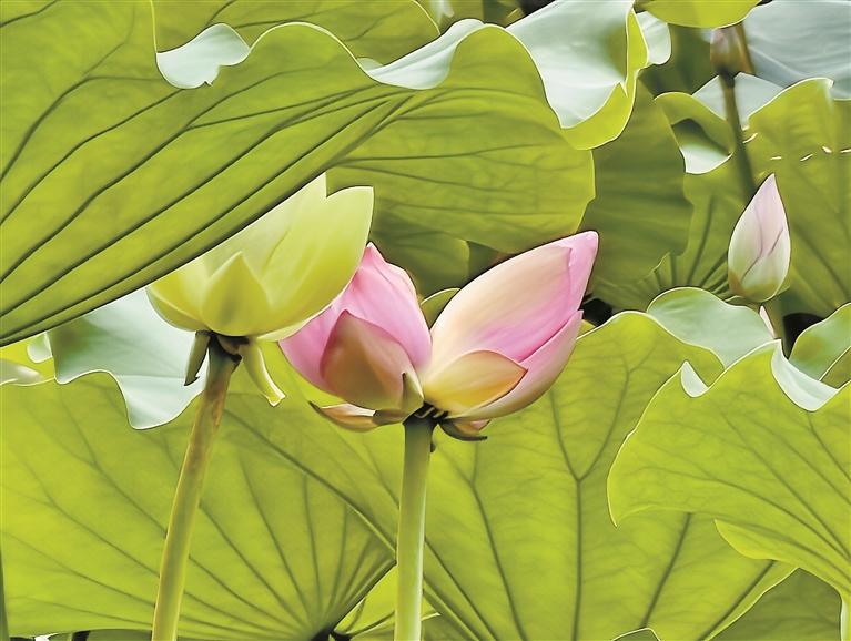 记者采访市民唐桂生得知,他是在芒果林湖边拍摄荷花时,无意中看到万荷丛中藏着并蒂莲。