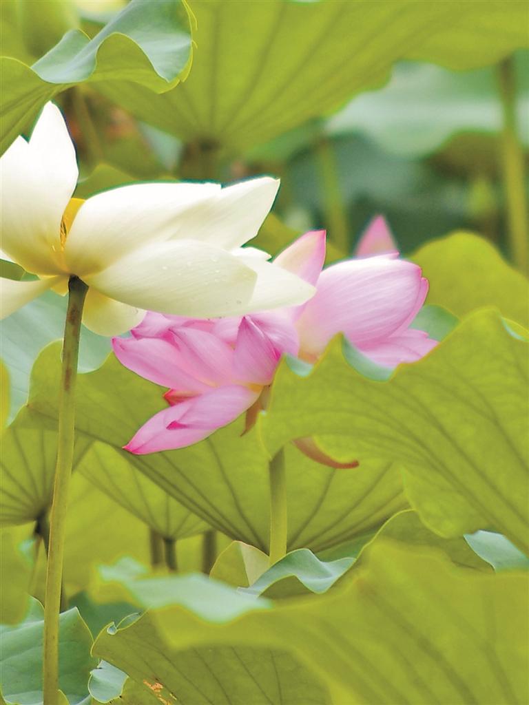 洪湖公园内发现两朵并蒂莲。