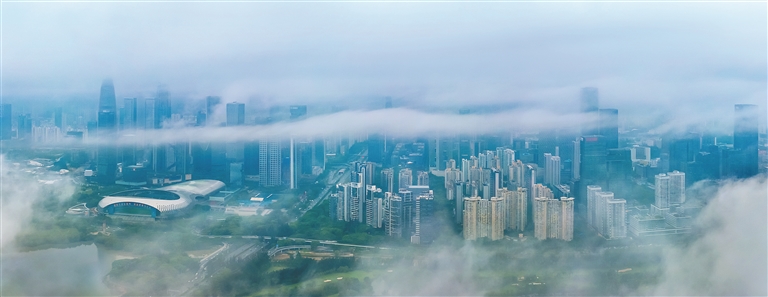 深圳新闻网2025年5月30日讯(深圳特区报记者 李伟文 通讯员 王小可 摄)5月29日,雨幕初歇,深圳氤氲在水汽中,楼宇、街道被加上一层朦胧滤镜,整座城市宛如一幅徐徐展开的水墨长卷。