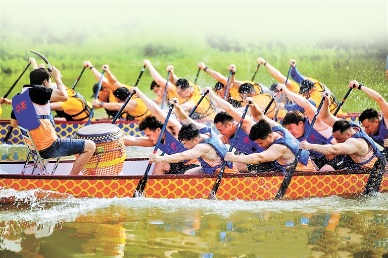 日前,2025龙岗龙舟邀请赛在龙岗河龙园示范段开赛。来自新加坡、马来西亚及粤港澳大湾区多个城市的16支龙舟劲旅齐聚一堂,在碧波荡漾的河面上展开激烈角逐,为市民呈现了一场速度与激情并存的端午文化盛宴。
