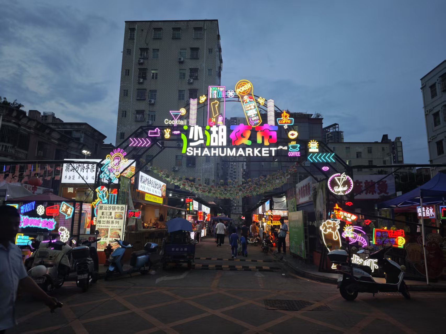 两年前,如今的“网红夜市”还是流动摊贩聚集的“马路市场”。广式烧腊摊主老陈回忆道:“以前像‘打游击’,生意不稳定,还常和城管‘躲猫猫’。”2023年,碧岭街道深入贯彻落实“百千万工程”中对“强化城乡区域协调发展、提升基层治理效能”的工作要求,借助新修订的《深圳经济特区市容和环境卫生管理条例》实施契机,将段心小区600平方米空地改造为疏导点,统一配备水电、排水设施,引导近30家摊贩“退街入市”。规范化管理后,周边交通拥堵极大改善,卫生投诉量减少,客流量反增30%,曾经的“治理洼地”蝶变为“消费高地”。沙湖社区党委书记表示,夜市升级是“百千万工程”系统推进的缩影:“我们以‘小切口’推动‘大变革’,通过油烟净化、公厕革命等多项环境提升工程,持续提升居民满意度,真正实现‘烟火气’不扰‘凡人心’。”