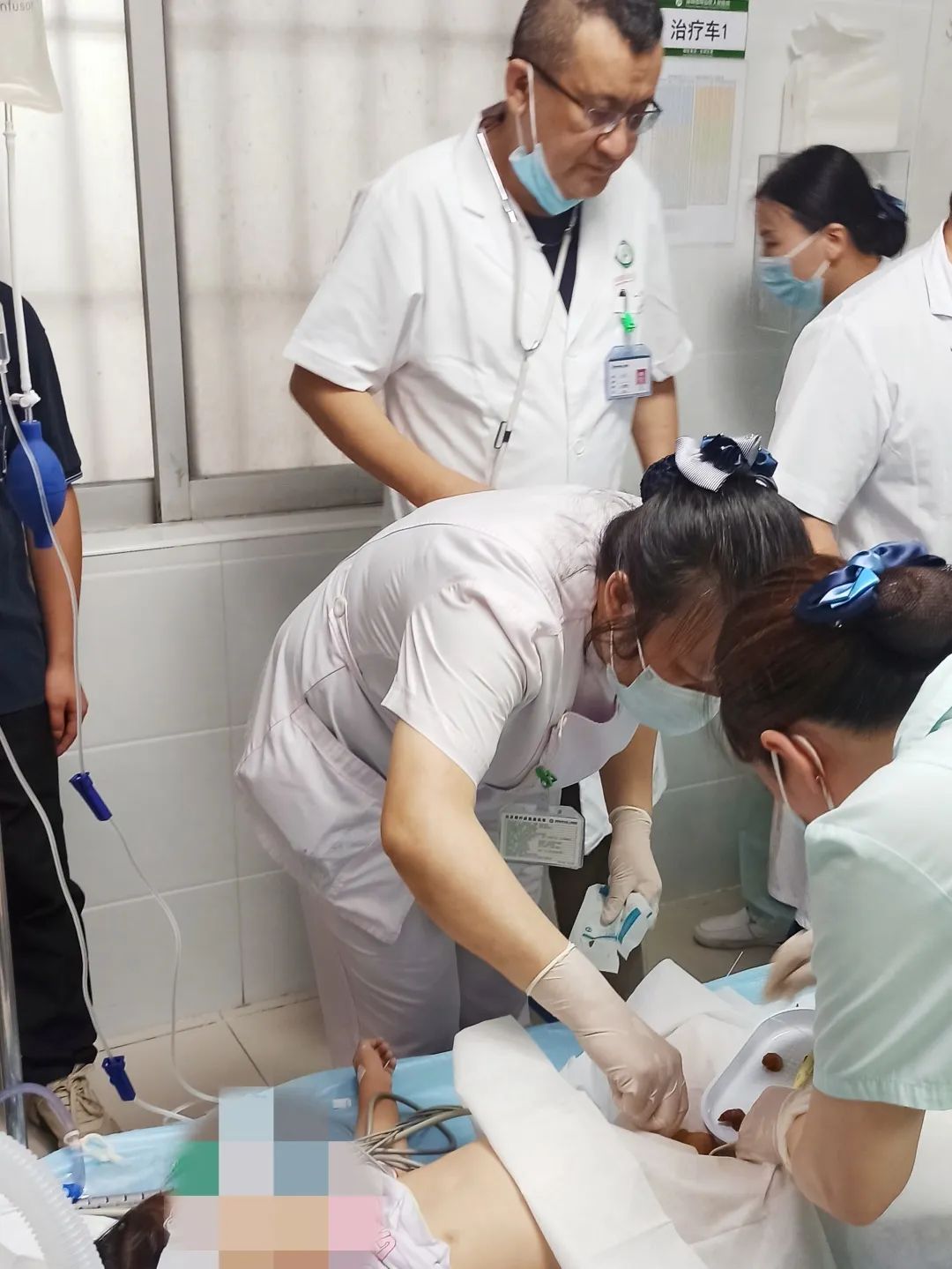 抢救室内,时间以秒计算。张斌成医师立即开始心肺复苏,急诊科护士长黄彩云迅速建立静脉通道,吸痰机、呼吸机、心电图机、除颤仪、床边彩超等全部就位。逯军教授坐镇指挥,每一个指令都清晰而坚定……