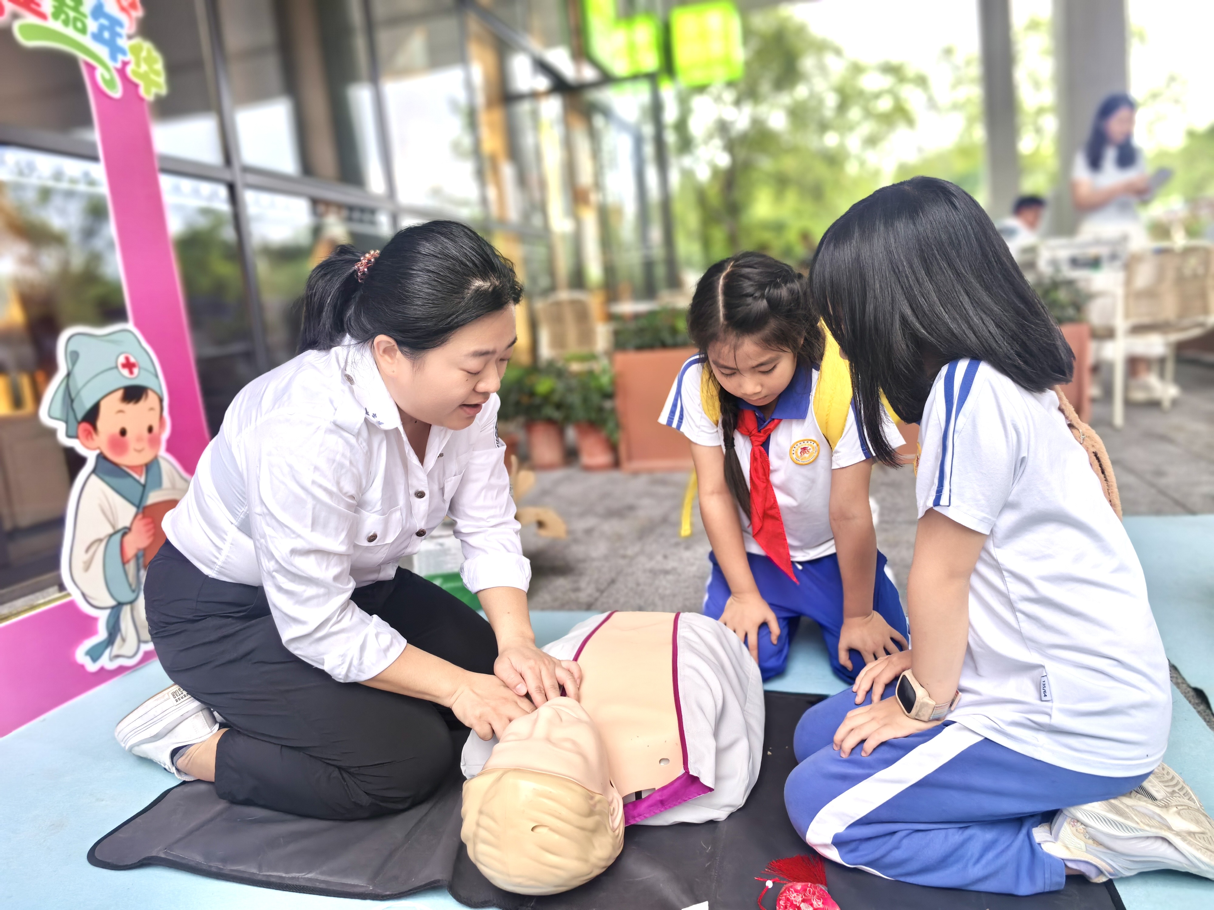 “我们希望每个孩子都能在快乐中健康成长,也希望中医文化的种子能在他们心里悄悄发芽”,中医儿科专家现场教授小儿推拿手法,指导家长儿童脾胃调理的技巧。在青少年体重管理区,针灸科的专家针对青少年肥胖问题,结合中医体质辨识、针灸穴位按压等疗法,通过针灸铜人模型讲解保健知识,为肥胖儿童提供个性化体重管理方案。在急救培训区,急诊科医护团队演示心肺复苏、海姆立克急救法等技能,为在场的儿童和家长普及应急处置知识。