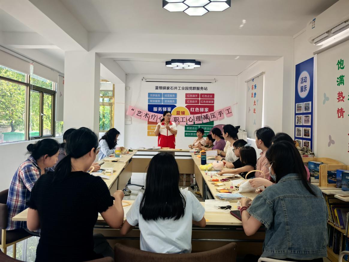 活动现场,悠扬的音乐营造出温馨的氛围。志愿者们耐心地分步骤讲解并演示工艺品的制作流程。职工们全情投入,将创意与传统文化巧妙融合。在艺术创作中,他们不仅体验到了专注带来的愉悦,更实现了情绪的自由表达与释放。“平时工作节奏快,压力大,这次活动让我静下心来,感受到了传统工艺的魅力,也体会到了创作的乐趣,整个人都轻松了不少。”一位参与活动的职工分享道。