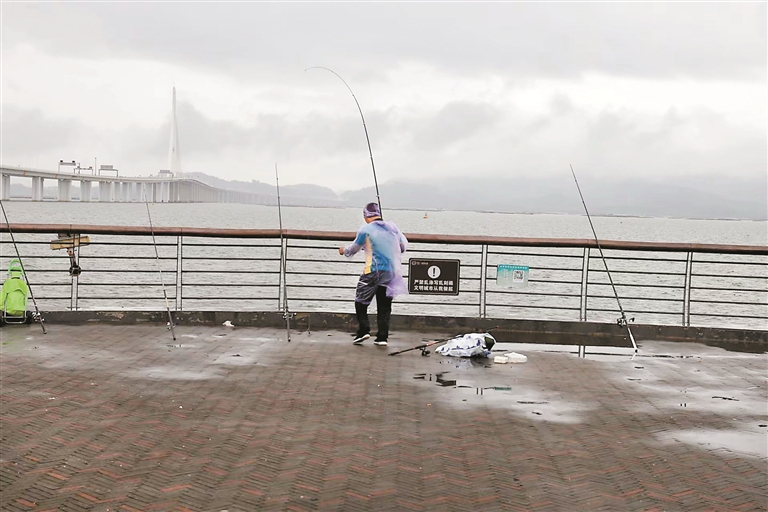 通告上标出了禁渔区域坐标,深圳湾大桥北侧的观海栈桥位于禁渔区内,此前偶尔有部分游客悄悄下钩垂钓。“这片属于禁渔区,每天都有不少人抱着侥幸心理来钓鱼,我们只能在这里加强巡逻反复劝导。”一位保安表示。