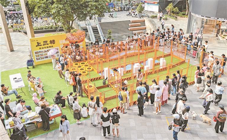 ▲深圳消费再添萌动力。周末或节假日,深圳一些商业综合体内会举办宠物友好主题活动,吸引大批市民携宠打卡。图为壹方天地主办“哈基米碰头大会”。 深圳特区报记者 何龙 摄