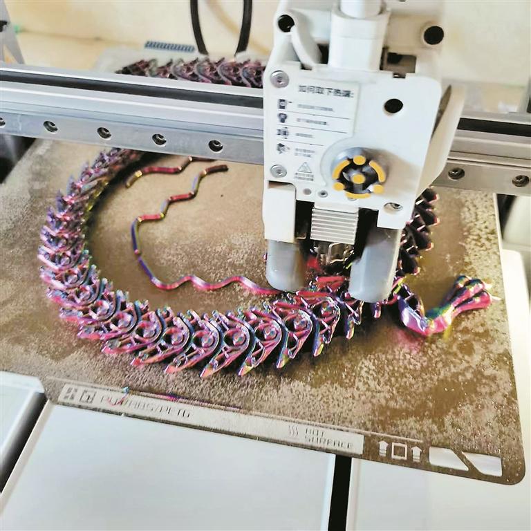 张鹏工作室的3D打印机正在制作“彩色龙”。梁学思 摄
