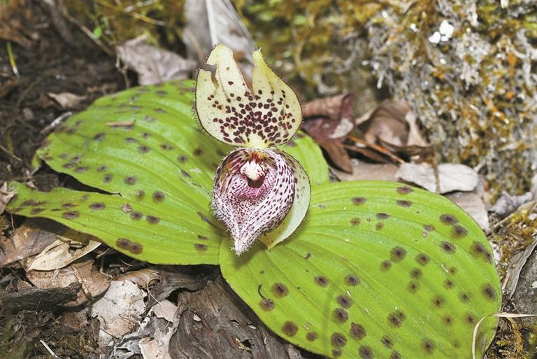 对叶杓兰是东亚分布的小型地生兰,在我国主要见于四川省西北部和台湾省北部,历史上湖北省仅在1984年有采集记录。此次在神农架国家公园海拔2000-2100米的针阔混交林林下,发现了两个野生居群,约15株,其中2株正值花期,其余多处于花蕾期,植株分布集中且生长状态良好。“这是湖北时隔41年首次在野外确认该物种存在,对掌握其分布现状和生境特征意义重大。”兰科中心科研人员张成博士告诉记者。