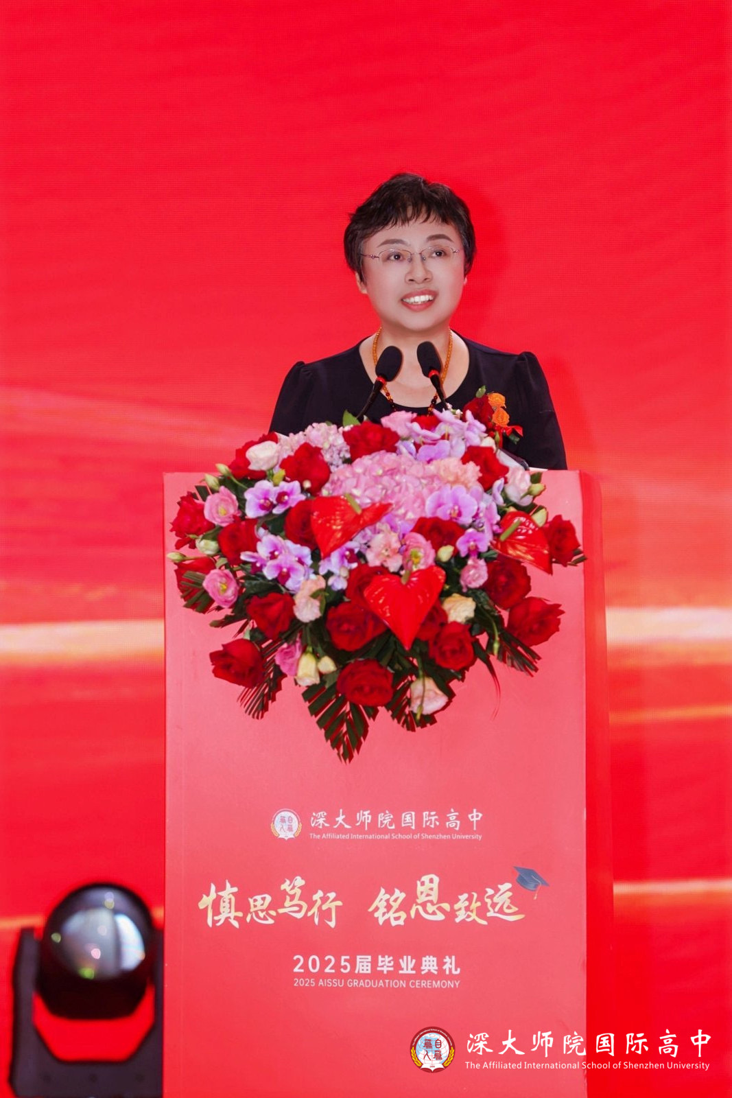 深圳新闻网2025年6月15日讯 (记者 曹园芳)6月14日,深大师院国际高中(AISSU)2025届毕业典礼在福田香格里拉大酒店举行。本届典礼以“慎思笃行,铭恩致远”为主题,学校中外籍教师、全体毕业生及其家长欢聚一堂,共同见证这一充满喜悦、荣耀与感动的青春盛典。